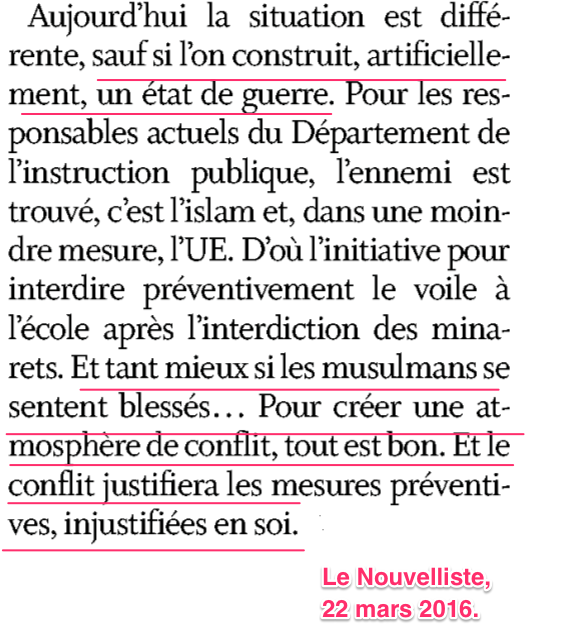Monsieur le Président de la République, en tant que ministre élu du peuple suisse, je proteste vigoureusement contre l’ingérence grossière des responsables du Parti socialiste français dans les affaires de mon pays. Je vous demande également de prendre toutes les mesures que vous autorise l’Etat de droit, secondé par l’état d’urgence, afin que la délinquance de vos banlieues cesse de prendre nos cantons pour cible.